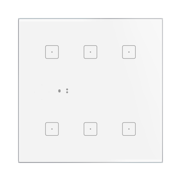 RFSW-62/W/230V Dotykový skleněný ovladač se spínacími relé, 6 tlačítka, ostré rohy