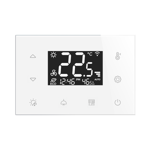- Sklenený dotykový batériou napájaný termostat RFTC-4/W, biely