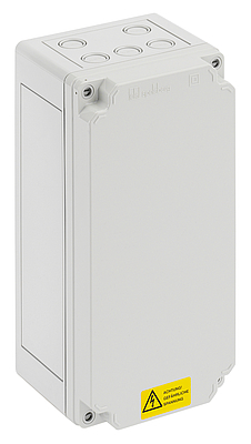 - Skriňa sieťovej prípojky pre 230 V striedavé siete (L-N-PE / L-PEN) podľa VDE-AR-N 4100 (domové pripojovacie skrine pre jednofázové pripojenie), In=25 A, Imax=63 A, osadená: 1 x NH00 poistkový prvok, 1 x svor mostík 10mm2, 1 x úložný výklenok pre 2 vodiče