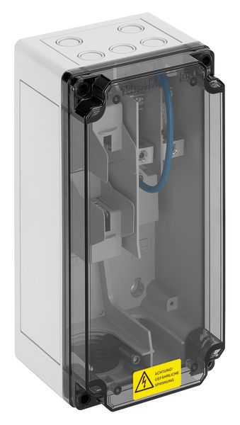 In=25 A, Imax=63 A, osadená: 1 x NH00 poistkový prvok, 1 x svor mostík 10mm2, 1 x úložný výklenok pre 2 vodiče - Pripojovacie svorky prívodného vedenia: Rámová svorka (6 - 50 mm2 CU, 10 - 50 mm2 AL)